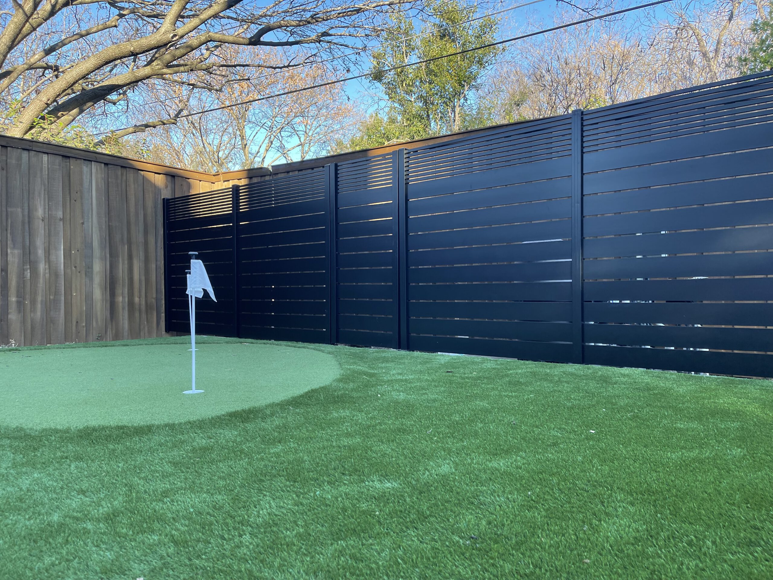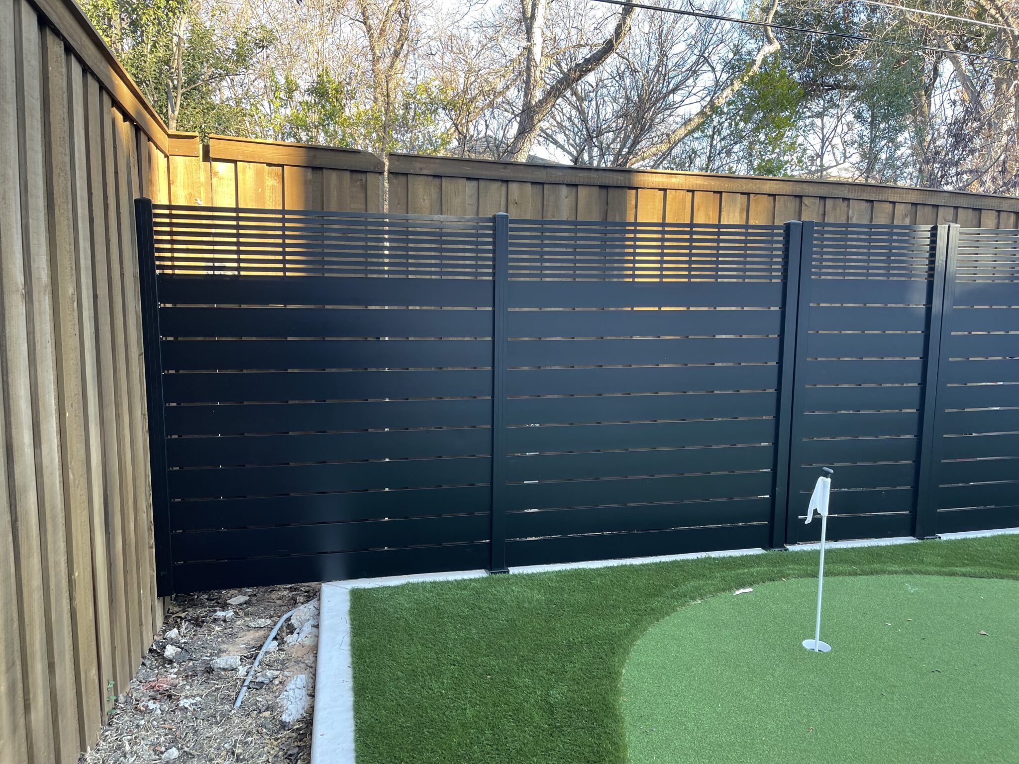 6’ height aluminum fence panels made with first 5’ of 5.5” aluminum slats with 1⁄2” spacer and top 12”