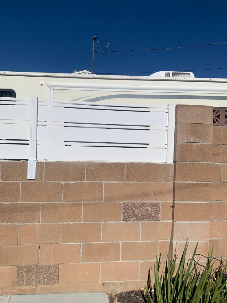 Wall topper 2’ height (Miami Style) made with 5.5” aluminum slats, 1” aluminum slats and ½” spacers between them. The perfect solution for extra privacy if your wall is not high enough. Super easy installation without the use of any special tools other than miter saw and a drill. The aluminum slats have been customized to suit the owner’s preferences and incorporated into the existing design as far as the layout is concerned.