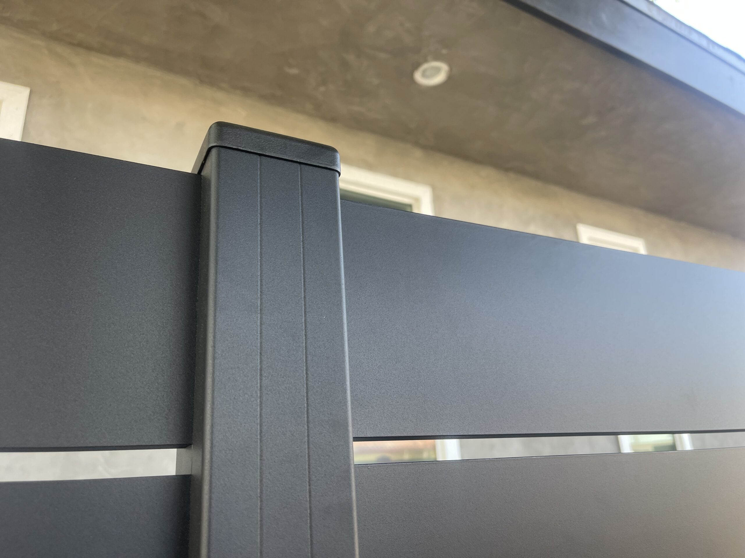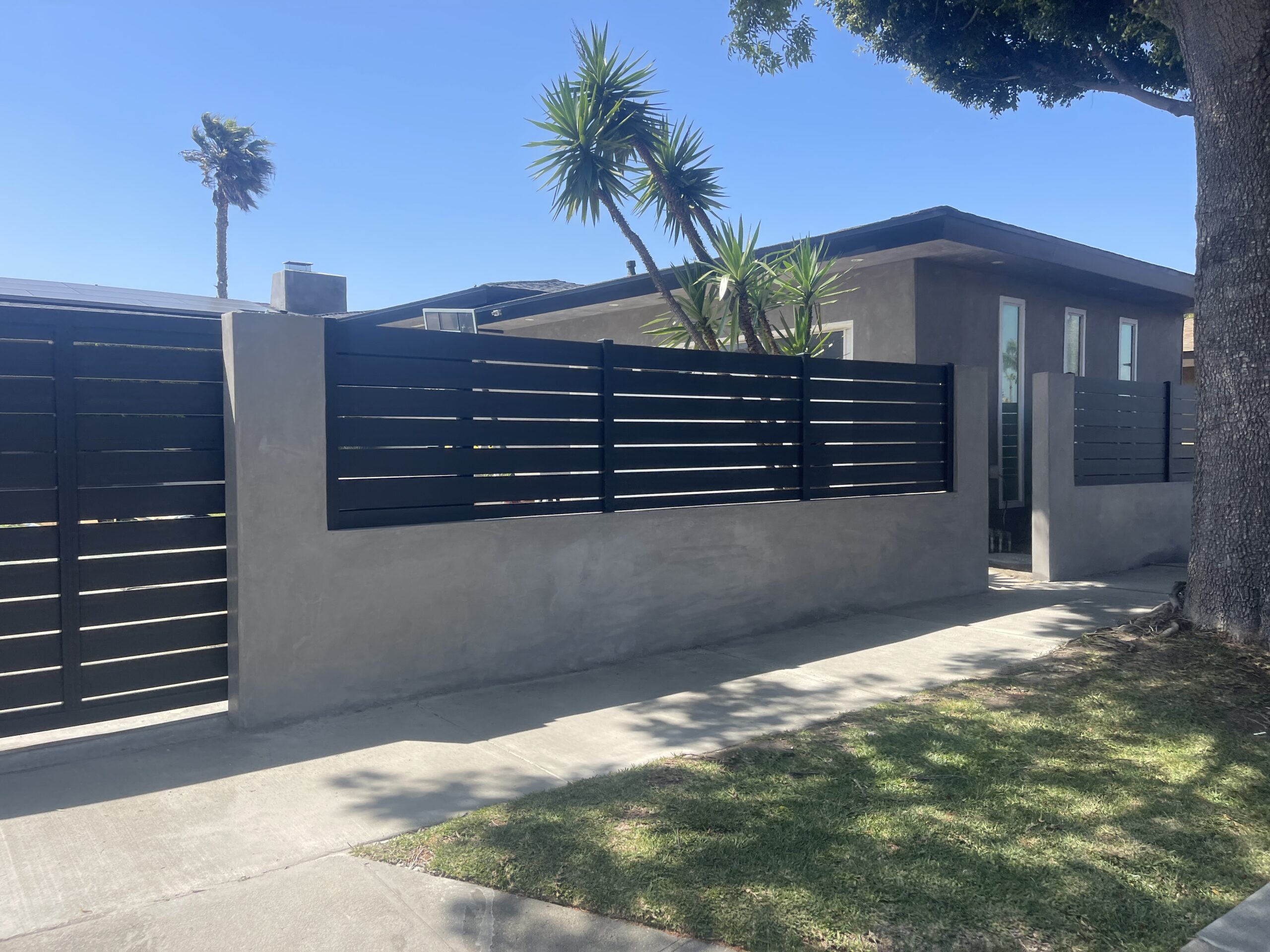 Enhance your property’s aesthetics and security with black aluminum fence panels and gate in Los Angeles, CA 90008. Crafted with precision, these sleek and modern aluminum gates feature wide, horizontal slats in a matte black finish. Perfectly integrated on a concrete base, this design enhances both stability and privacy. The aluminum material ensures durability with no visible corrosion or wear, making it an ideal choice for both residential and commercial properties.
