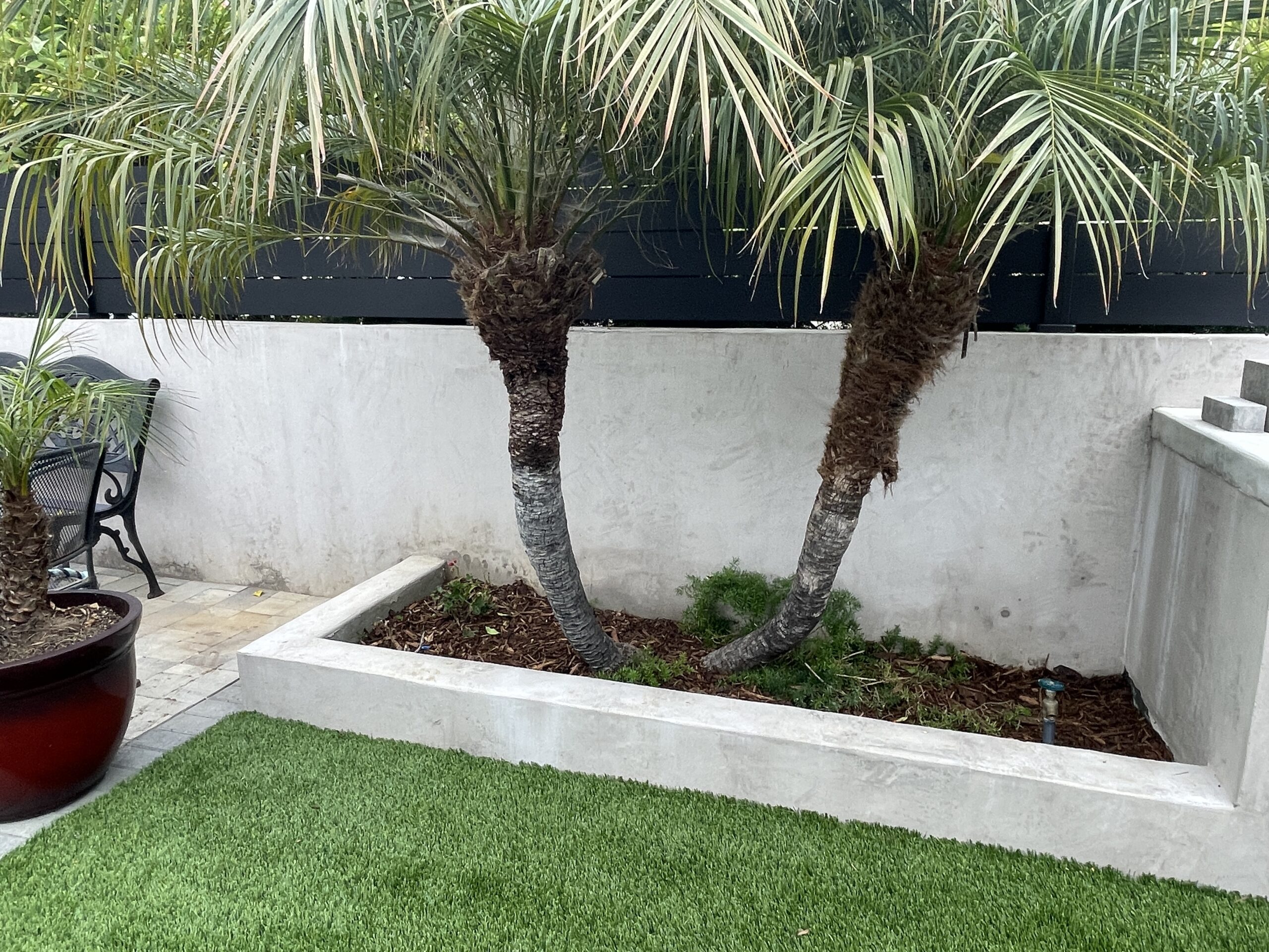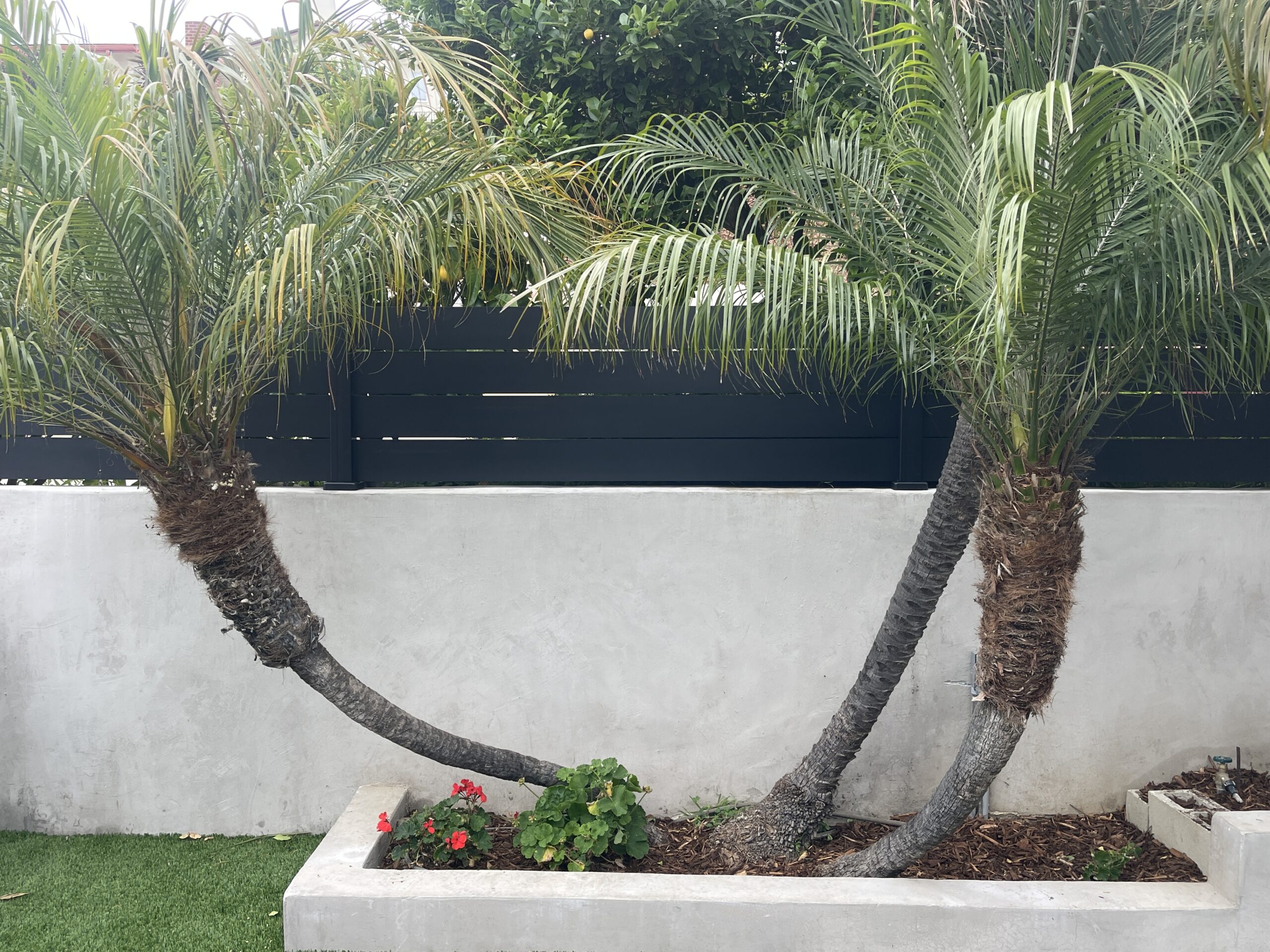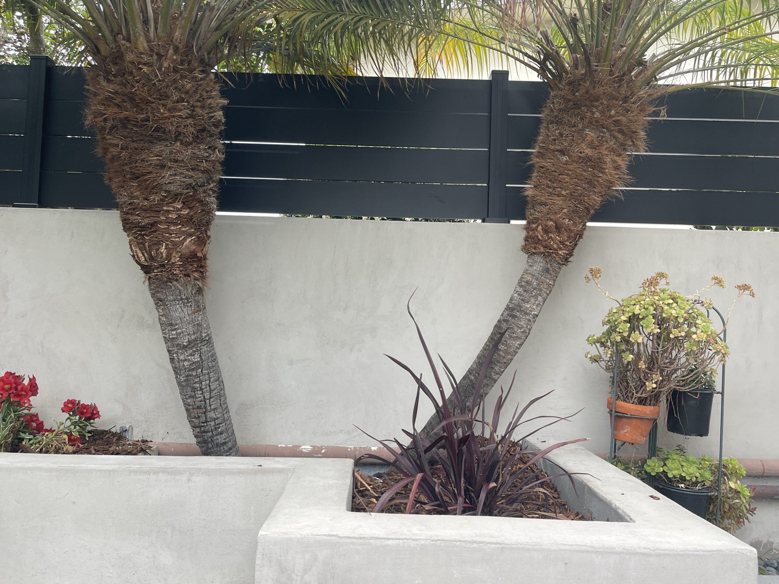 Black aluminum wall topper and small privacy fence panel. This installation was made with our 5.5″ aluminum slats and 1/4″ spacers for extra privacy.