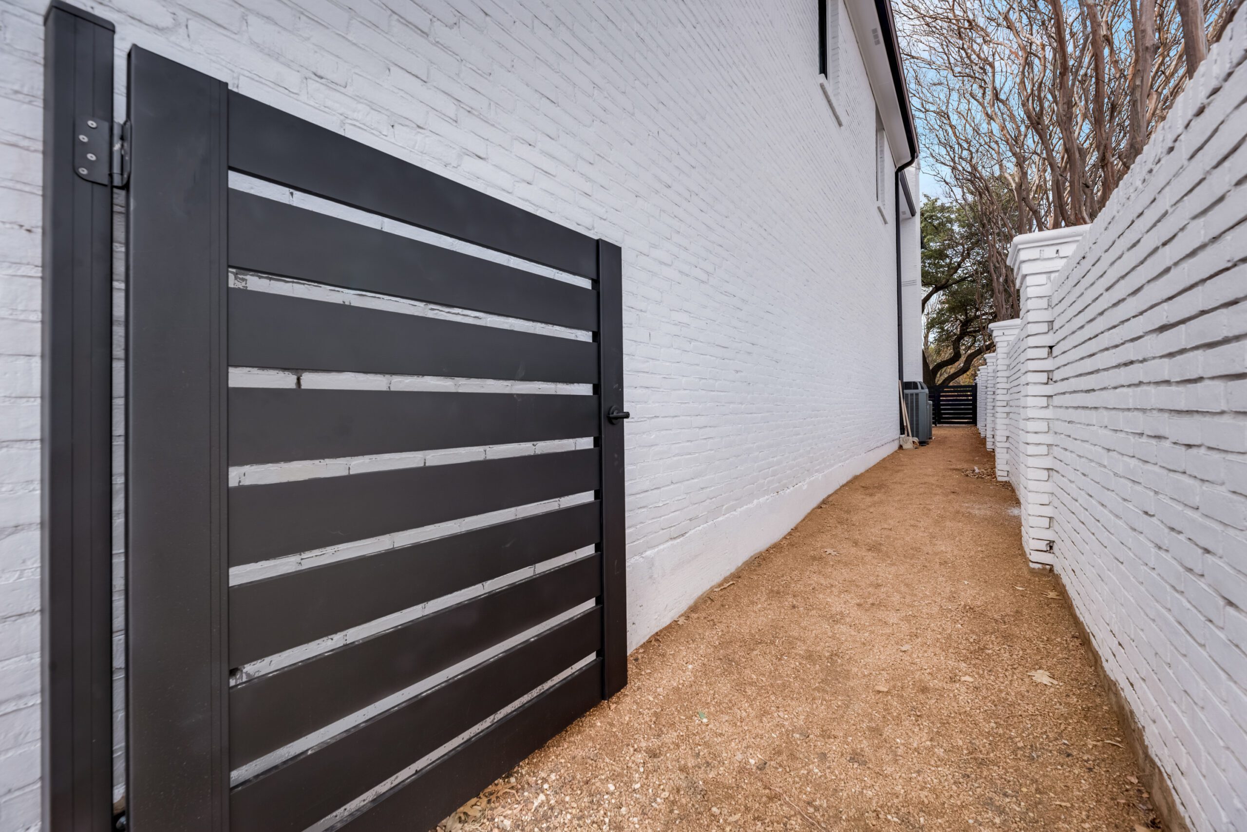 Two beautiful all aluminum black powder coated side gates installed by DFW Gates and Fence.