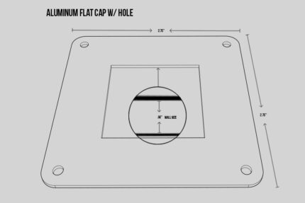 2.75" x 2.75" Flat aluminum cap with 4 holes in the corners. 2mm thickness.