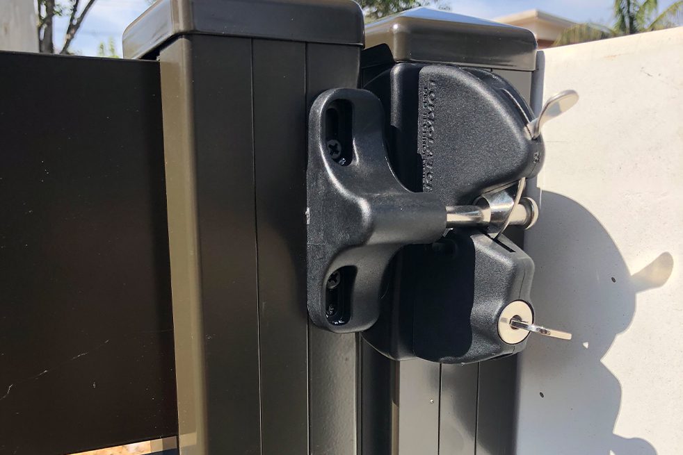 Black lockable gate latch lock with key. Comes with 2 keys and the screws.